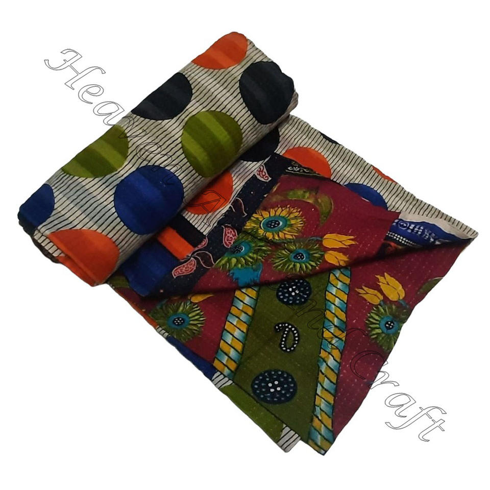 Cotton Kantha Quilts Indian Reversible Hand Stitched Heavy Throw Old Sari Blanket Patch Work Heavy 3 to 7 Layer Kantha Quilt