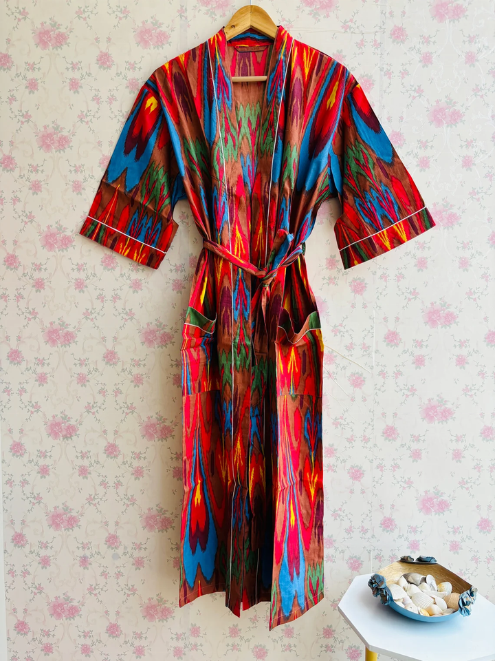 Cotton Kimono Bathrobe Bird Motif Turkish Cardigan Nightwear Dressing Gown For Summer Beach Wear For Women