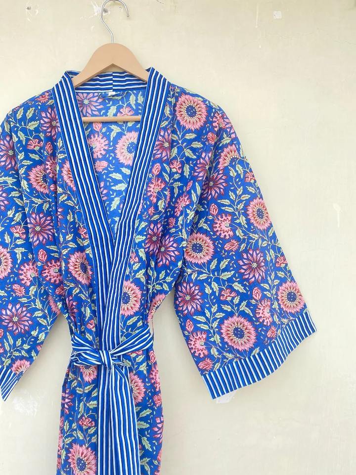 Cotton Kimono, Japanese Kimono, Pure Cotton Robe, Handmade Kimono, Vintage Kimono, Short Cotton Kimono, Kimono With Belt