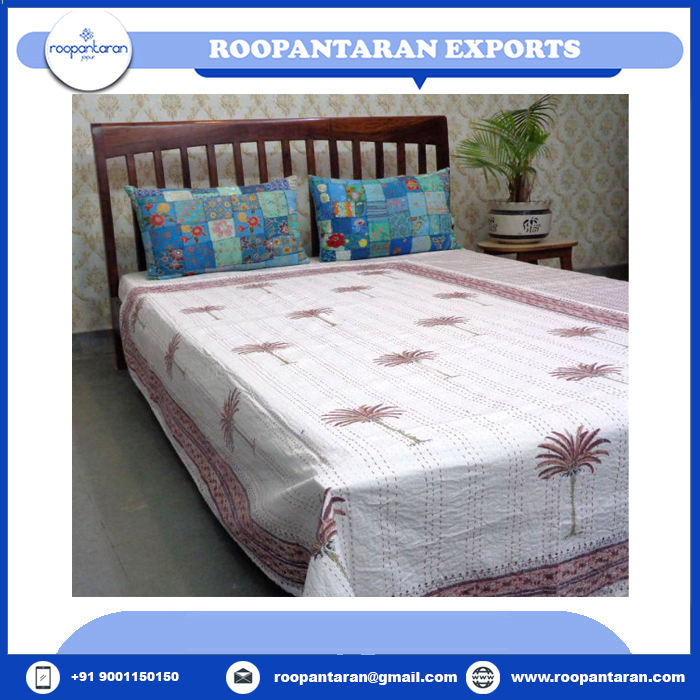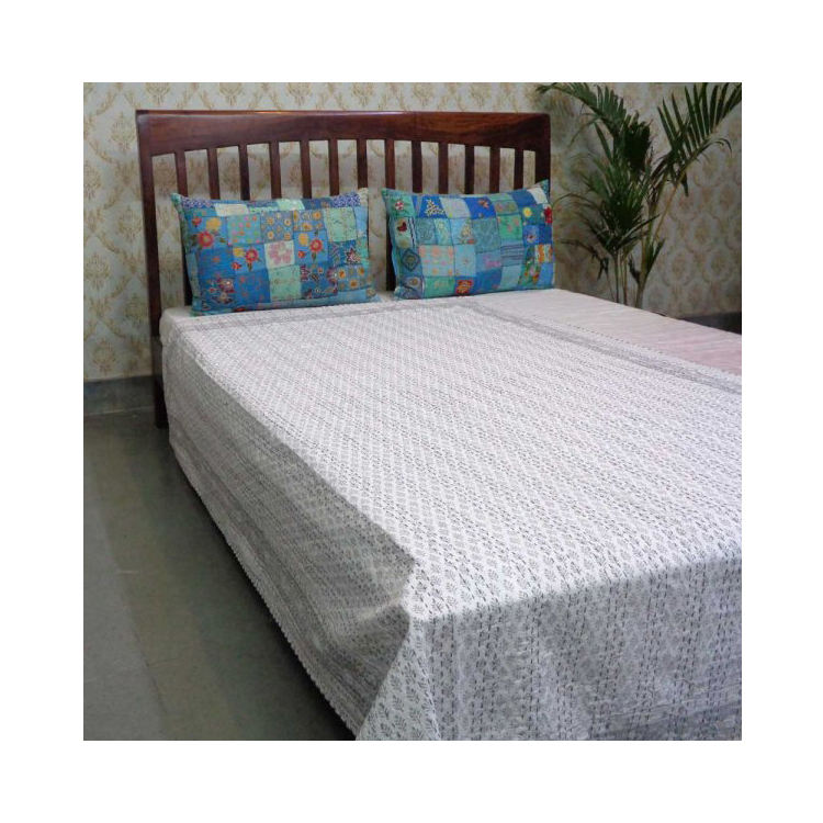 Indian Manufacturer Cotton Knit Throw Blanket Handcrafted Block Printed Kantha Quilt Twin Size Elevate Bulk Supply