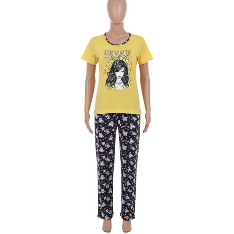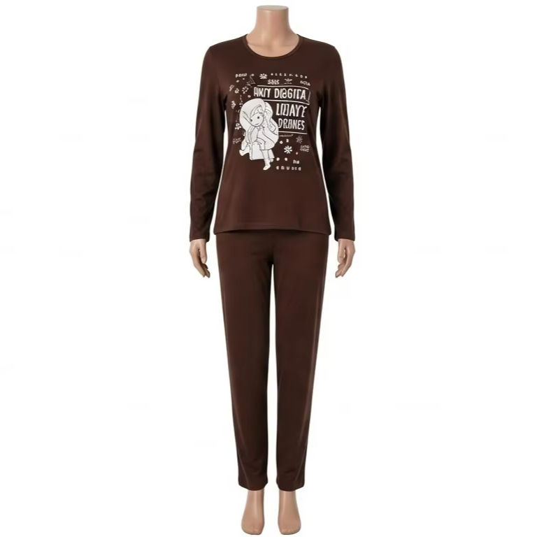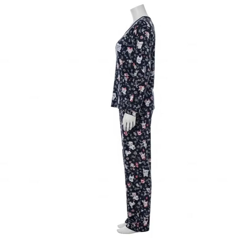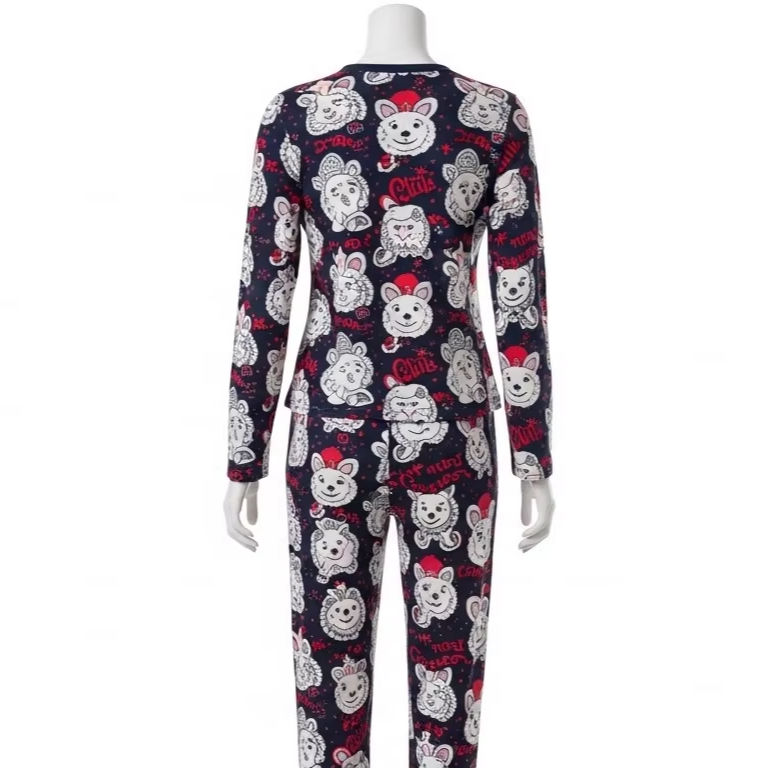 Polyester/Cotton Knitted Womens Nightgowns Cartoon Pattern Thermal Discharge Printed Soft Breathable Spring Home Wear Wholesale