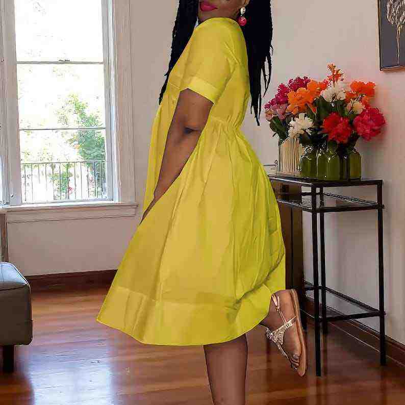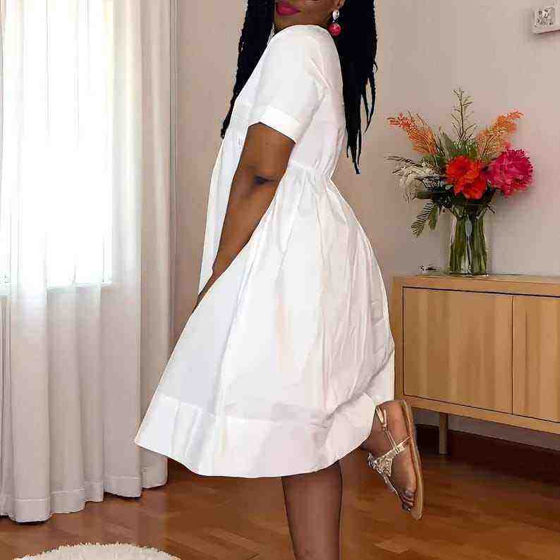 Cotton Linen Fabric Short Sleeve A Line Midi Dress for Women Summer Casual Wear Comfortable Smart Style Gift