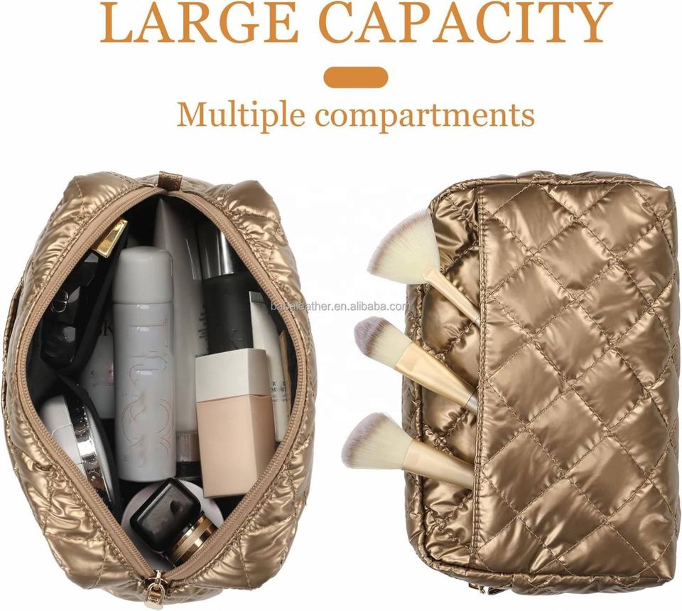Cotton Makeup Bag Mini Cute Makeup Pouch Quilted Makeup Organizer Bag for Travelling Puffy Quilted Cosmetic Bags for Purse