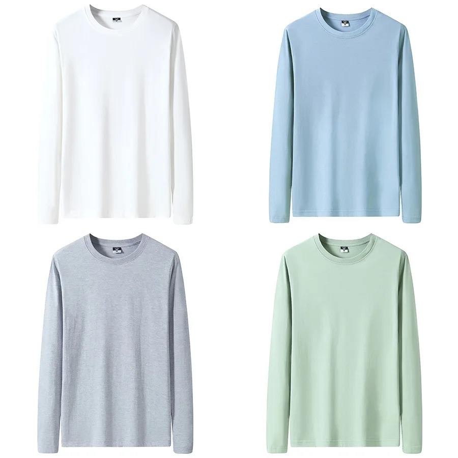 Cotton Men's Long Sleeve O-Neck T-Shirts Blank Eco-Friendly Breathable Plus Size M-6XL 12 Colors Autumn Solid Color Wholesale