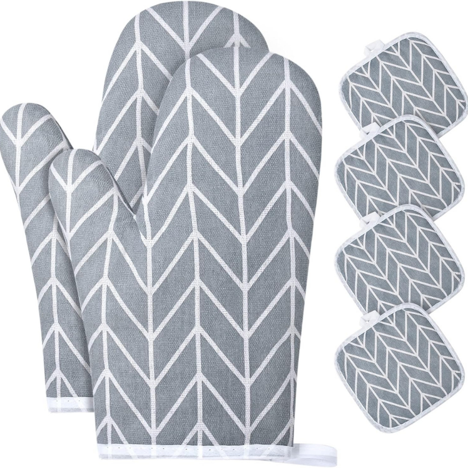 Cotton Oven Mitts with Waterproof Heat-Resistant Mat - Cooking Gloves for Baking, Grilling & Kitchen Use