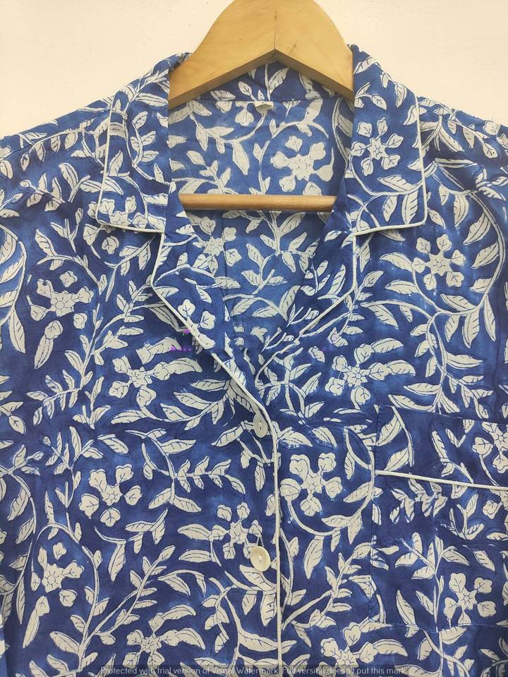 Hand Block Print Floral Cotton Pajama Set Soft Nightwear with Shorts for Spring Gift for Her Summer PJ Set