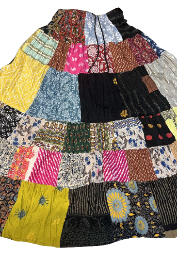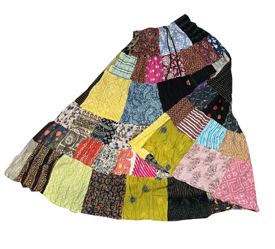 Cotton Patchwork Long Skirt, Hippie Boho Floral Printed Patchwork Dress Skirts, Bohemian Comfortable Traveling Skirt Dress