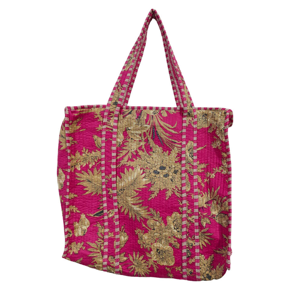 Cotton Pink Hand-Block Printed Quilted Cotton Lined Tote Shopping Carry Bag Embroidered Design Women's Shoulder Hand Tote Bag