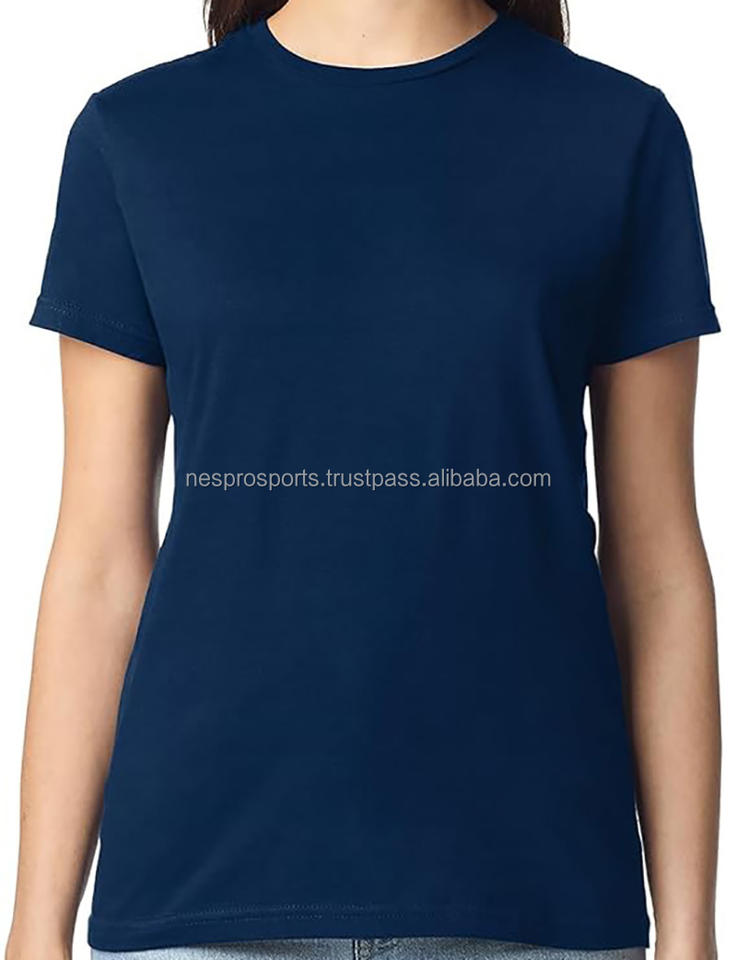 Cotton/Polyester Women Round Neck Denim T Shirt Soft Breathable Summer Casual Top OEM Private Label Apparel Factory