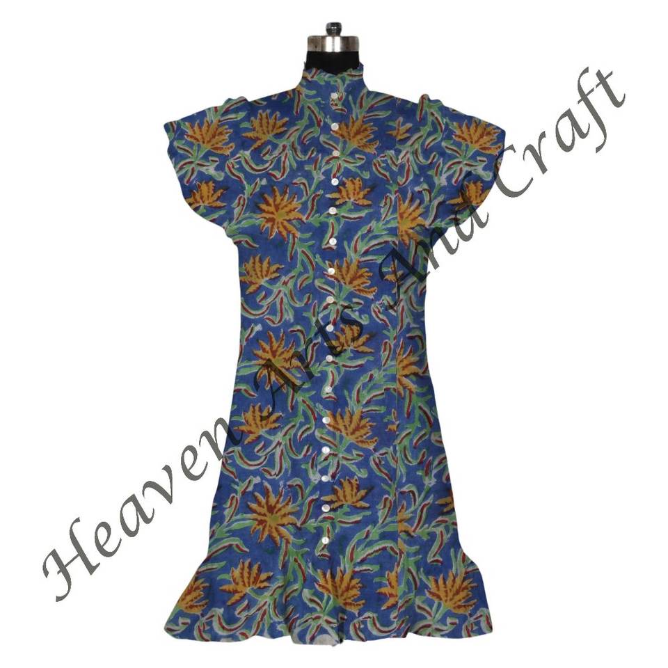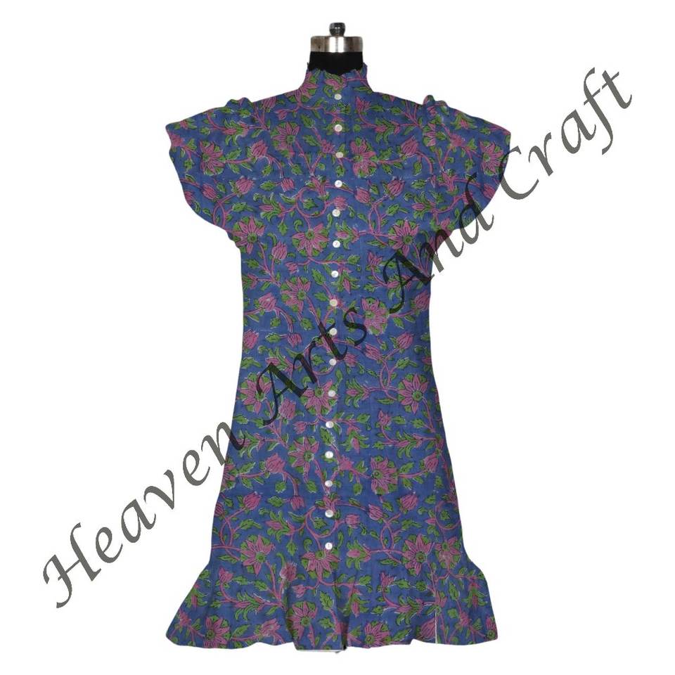 Cotton Print Short Sleeveless Summer Dress Sun Dress Indian Cotton Collection Beautiful Hand Block Printed Cotton Tunic Dress