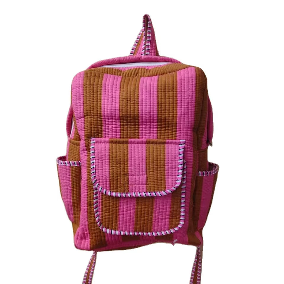 Cotton Geometric Quilted Wash Handmade Girls Kids School College Bohemian Backpack Summer Travel Bag Anti-Theft Zipper Closure