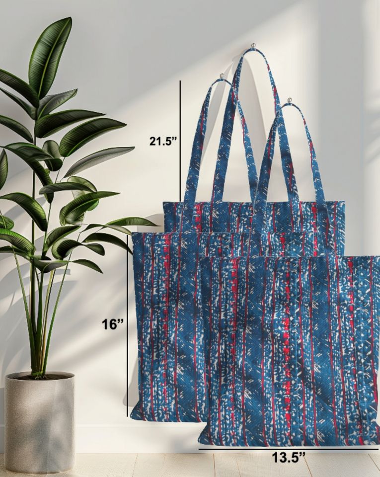 Product Name:Cotton Printed Tote Bag Indigo Stripe Design