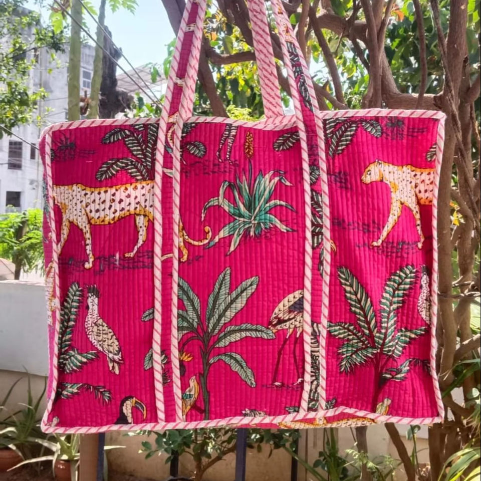 Cotton Quilted Bag Tote Shoulder Shopping Bag Quilted Cotton Hand Printed Reversible Large Handmade Bulk Product