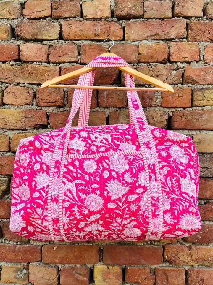 Cotton Quilted Duffle Bag Handmade Stylish Travel Bag Large Capacity Lightweight Durable Bag For Weekend Trips Gym Or Daily Use