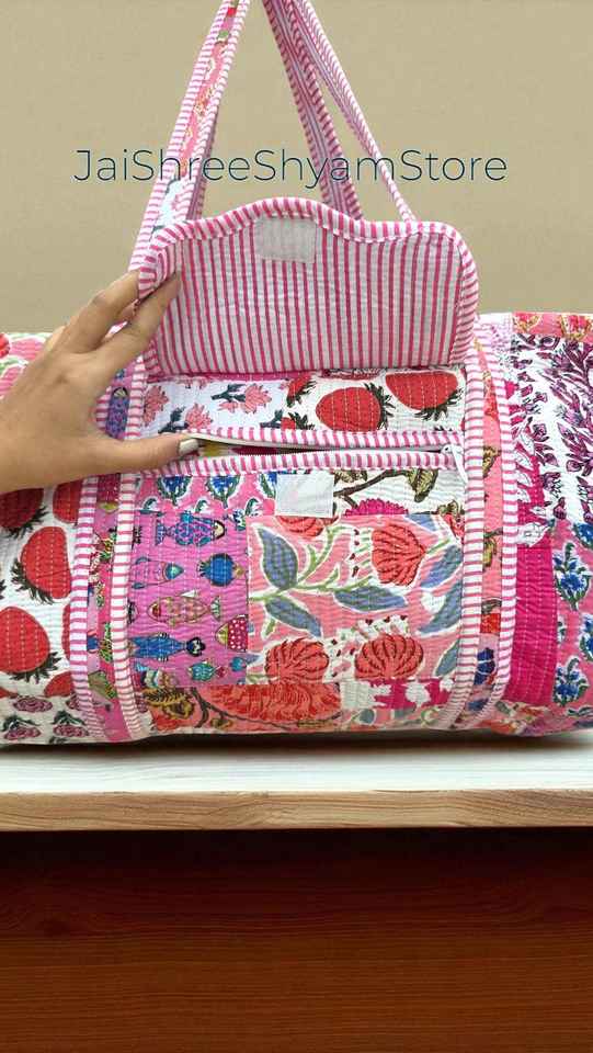 Cotton Quilted Duffle Bag Large Handmade Travel Bag Lightweight Durable Soft Material Ideal For Gym Work Weekends And Vacations