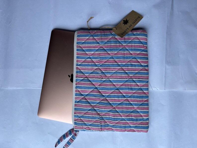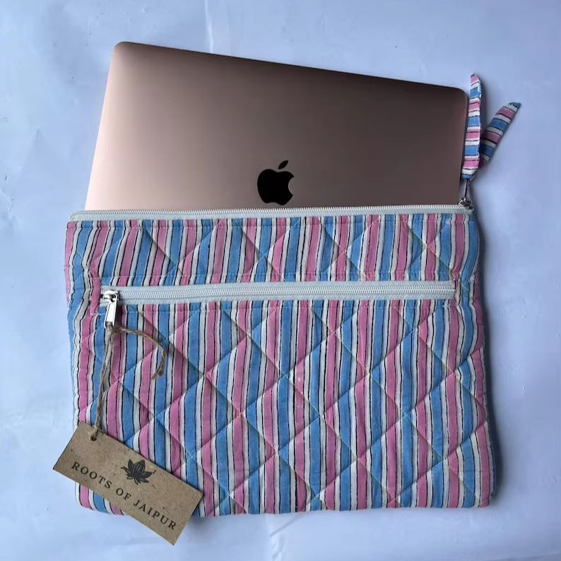 Cotton Quilted Laptop Bag Case Mac-book Case Laptop Care Puffy Pouch Zipper Closer Table Sleeve Women Unisex Business Bag