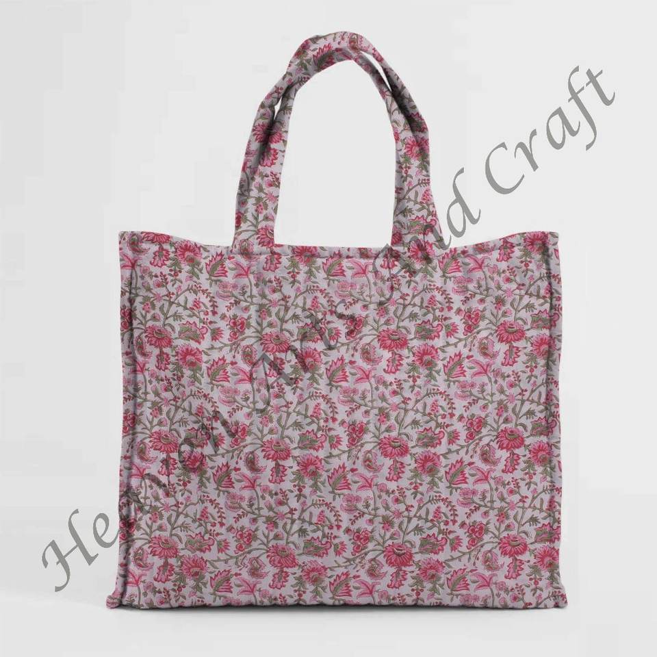 Cotton Quilted Square Quilted Bag Block Print Quilted Tote Bag For Women Boho Travel Quilted Bag Handmade Shoulder Purse Large