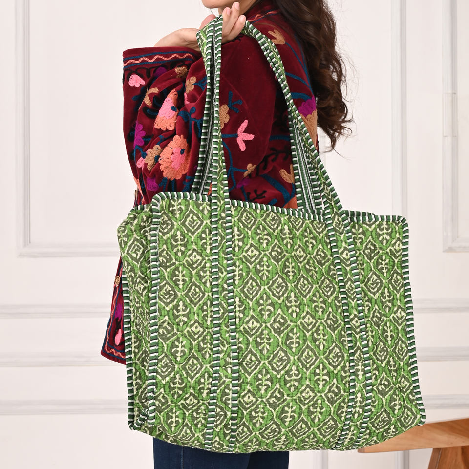 Cotton Quilted Tote Bag Shoulder Bag Cotton Hand Print Floral Eco Friendly Sustainable Shopping Bags