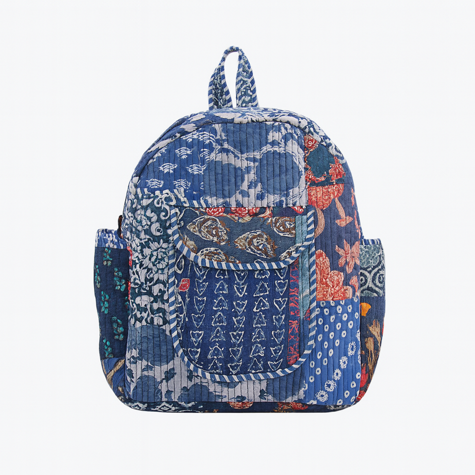 Cotton Quilted Unisex Backpack Zipper Organic Cotton Lining-Lightweight Patchwork Design Stylish Eco-Friendly Bag for School