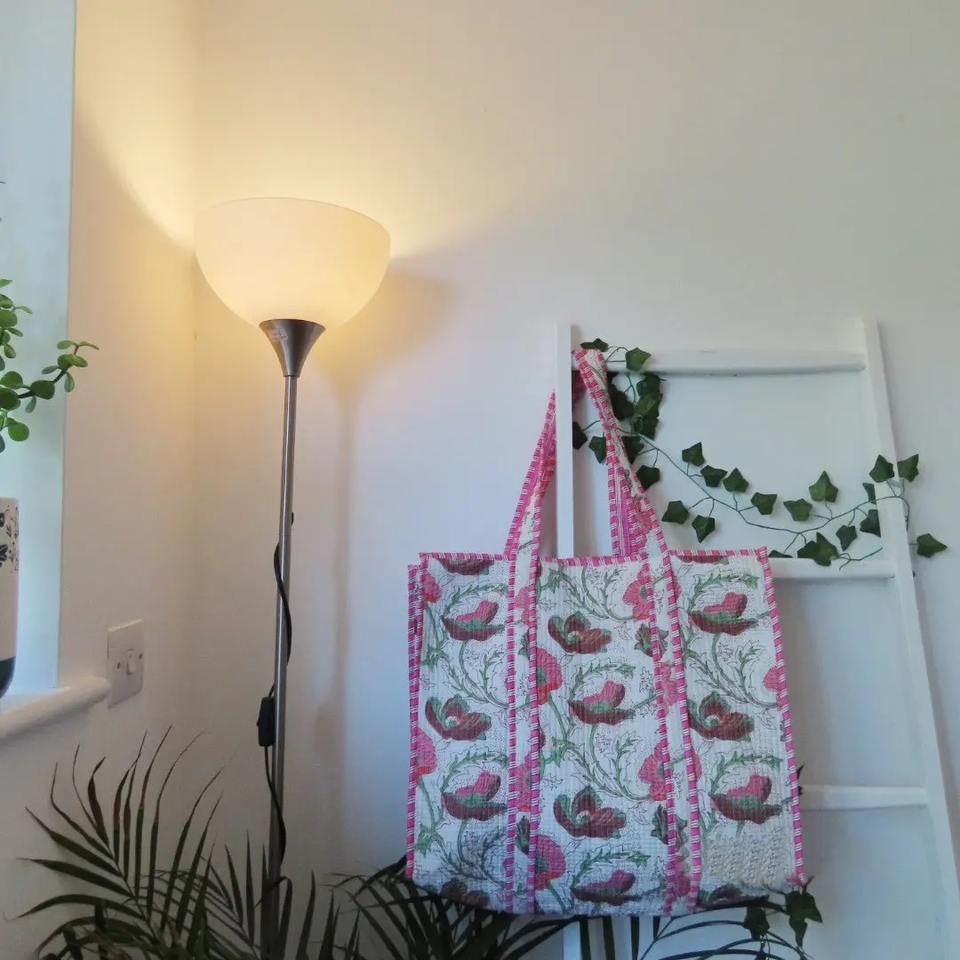 Lady Cotton Quilted Vintage Shoulder Tote Bags with Zipper Closure Canvas Lining-Lightweight for Travel & Shopping Floral Design