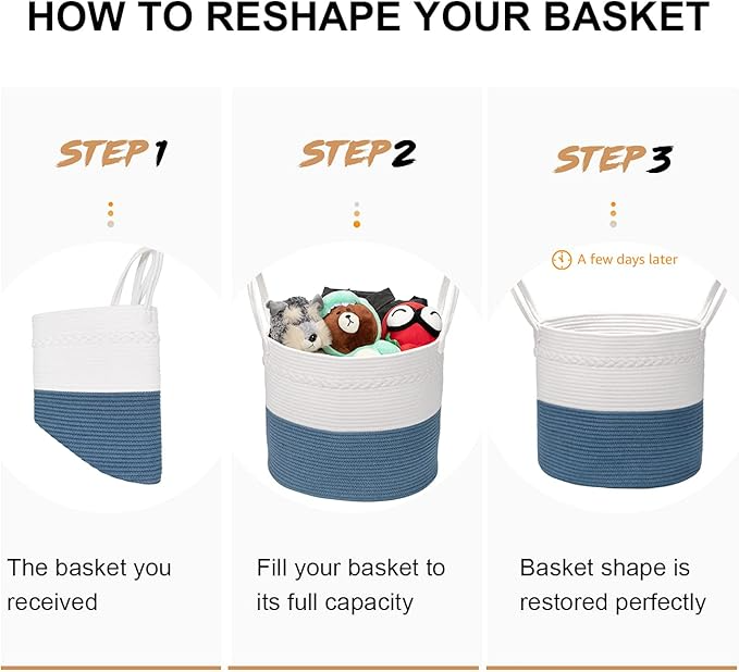 Jute Rope Basket with Handles Blue and White Striped Eco-Friendly Modern Storage Hamper for Home Organization and Bathroom Use