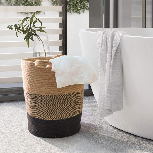 Cotton Rope Basket with Handles Eco-Friendly Foldable Storage Bin for Clothes Toys Laundry Baby Nursery and Blanket Organizer