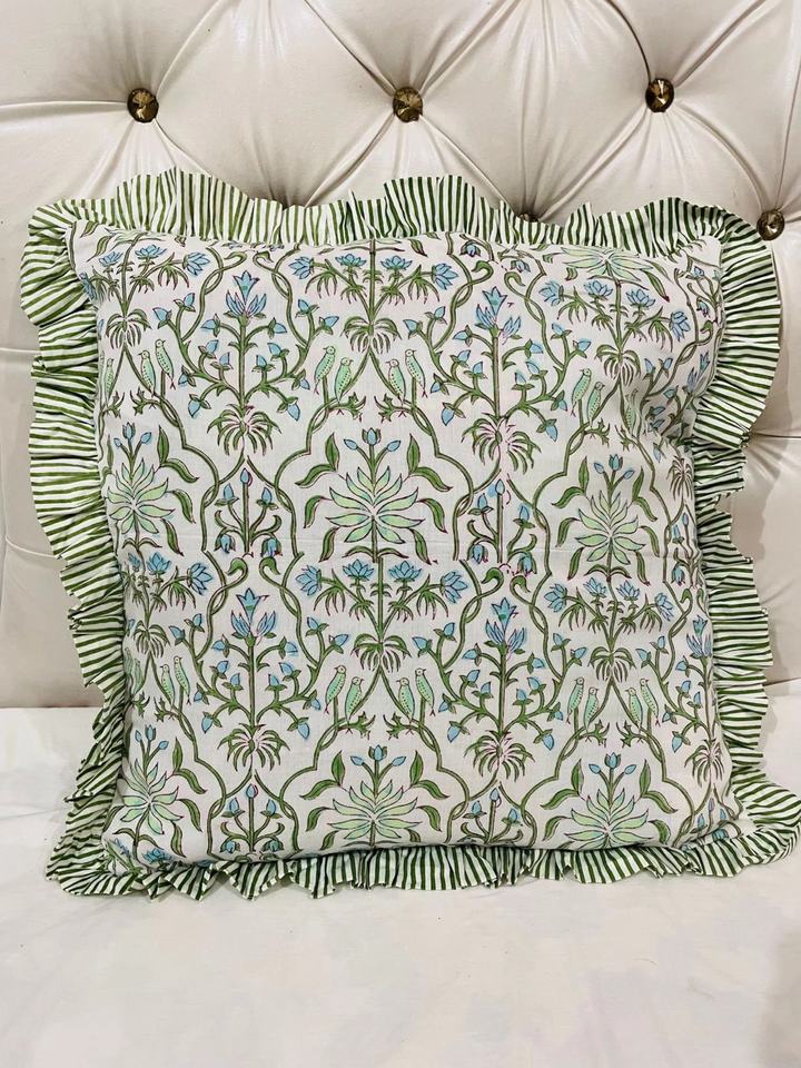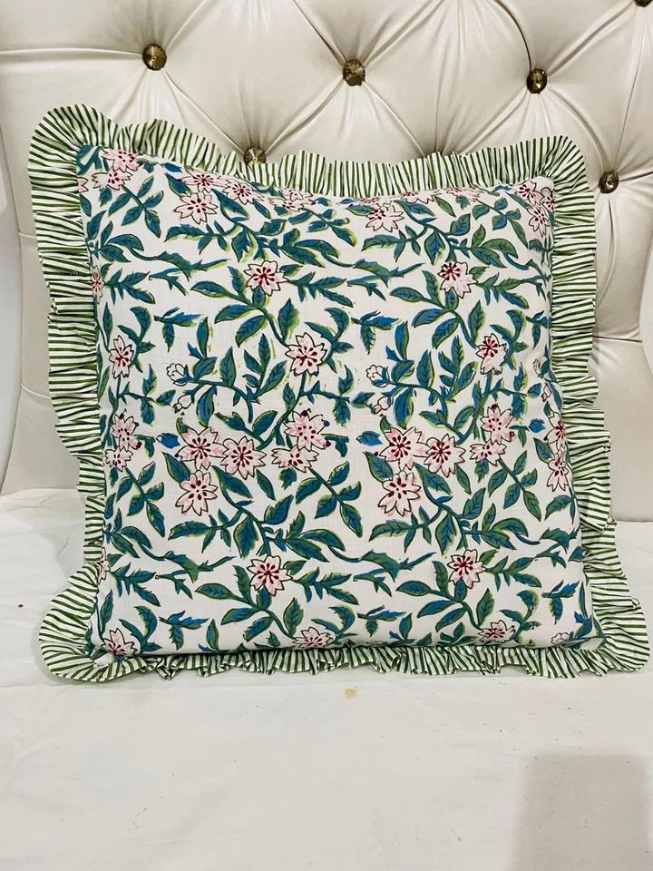 Cotton Ruffled Floral Pillowcases,100%Cotton Hand Block Cushion Cover Pillow Shame, Printed Bohemian Frill Cushion Pillows Boho