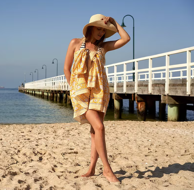Cotton Sarong Block Print Sarong Cotton Boho Scarf Neck Head Wrap Beach Gift for Her Mothers Day Valentines Birthday Summer