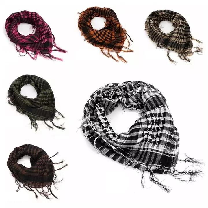 Cotton Scarf 95*95cm Outdoor Hiking Arab Desert Scarf Headshawl with Tassel for Men Women Bandana