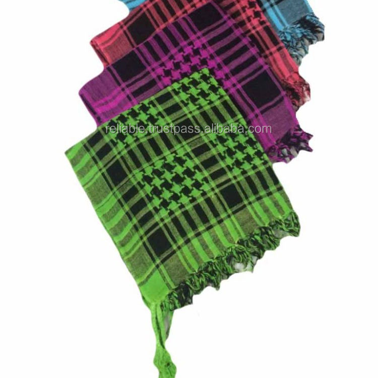 Cotton Shemagh Arab Scarves TKM Arafat Embroidered Neon Colors Middle Eastern Custom Length for Summer Style
