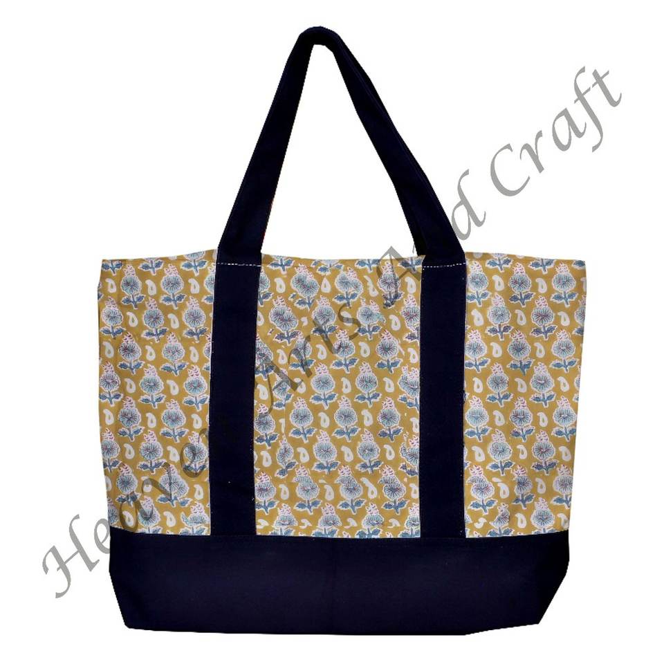 Cotton Shopping Tote Bag Traditional Black Handle Hand Block Printed Cotton Tote Bag