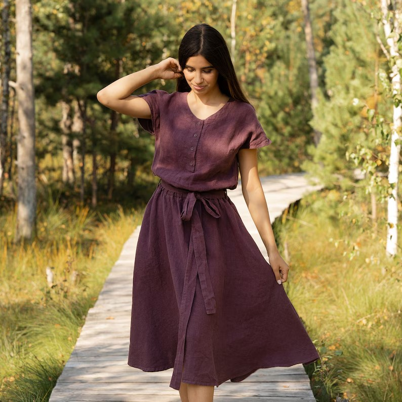 Cotton Short Sleeve Midi Dress Women Plus Size Summer Eco-Friendly Natural Waist Floral Print Customized Clothing