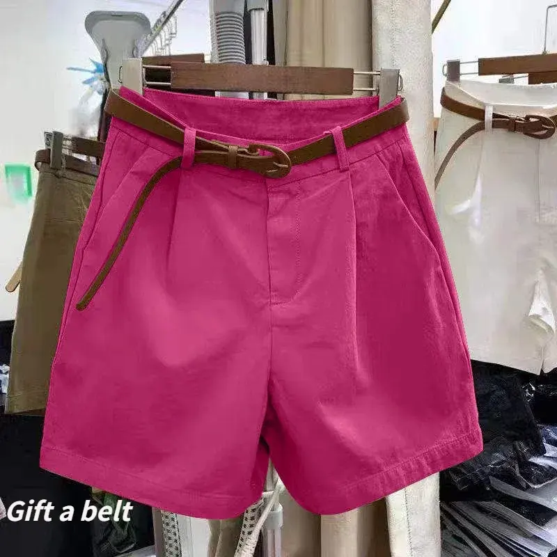 Cotton Shorts for Women Summer New Korean Fashion Loose Casual Wide Leg Short with Belt Female Solid White Women's Short Pants