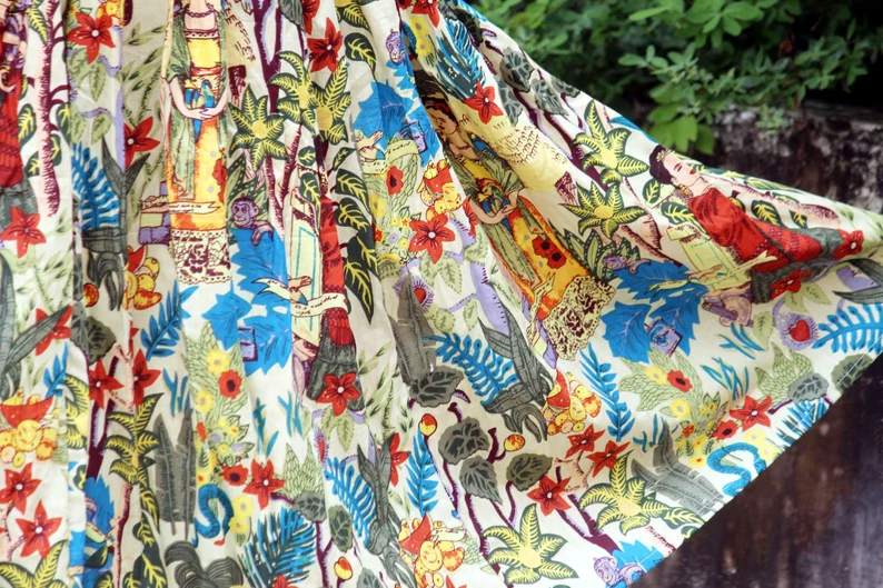 Breathable Natural Casual Cotton Boho Maxi Skirt Floral Hand Block Print Summer Beach Skirt Relaxed Fit Handmade