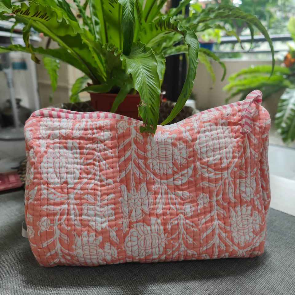 Cotton Toiletry Bag Large Quilted Pouch with Zipper Closure Eco-Friendly Leather Stylish Casual Multi-Purpose Design