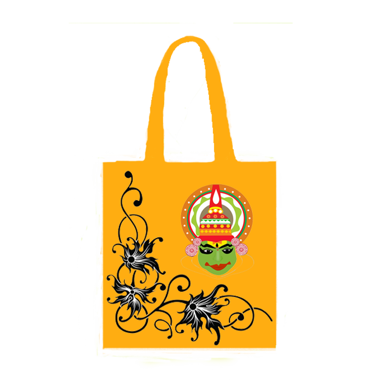 Cotton Tote Bag with Custom Screen Pattern Self-Handle Low Cost Innovation for Shopping Made in Kolkata West Bengal India