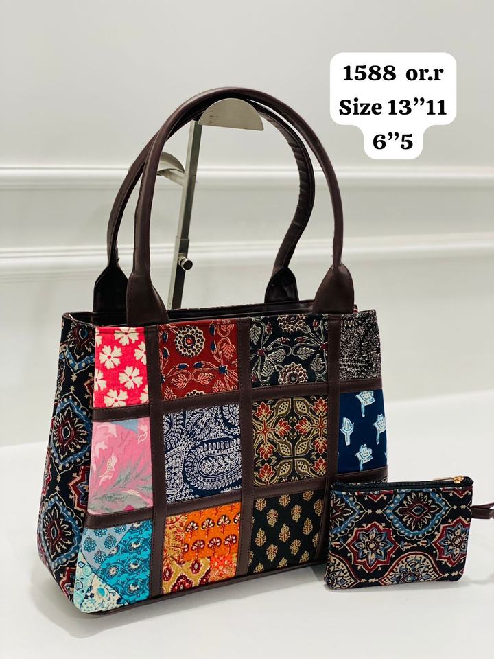 Unisex Vintage Water-Resistant Boho Embroidery Tote Pouch Multi-Color Handblock Fabric Casual Handbag for Men and Women