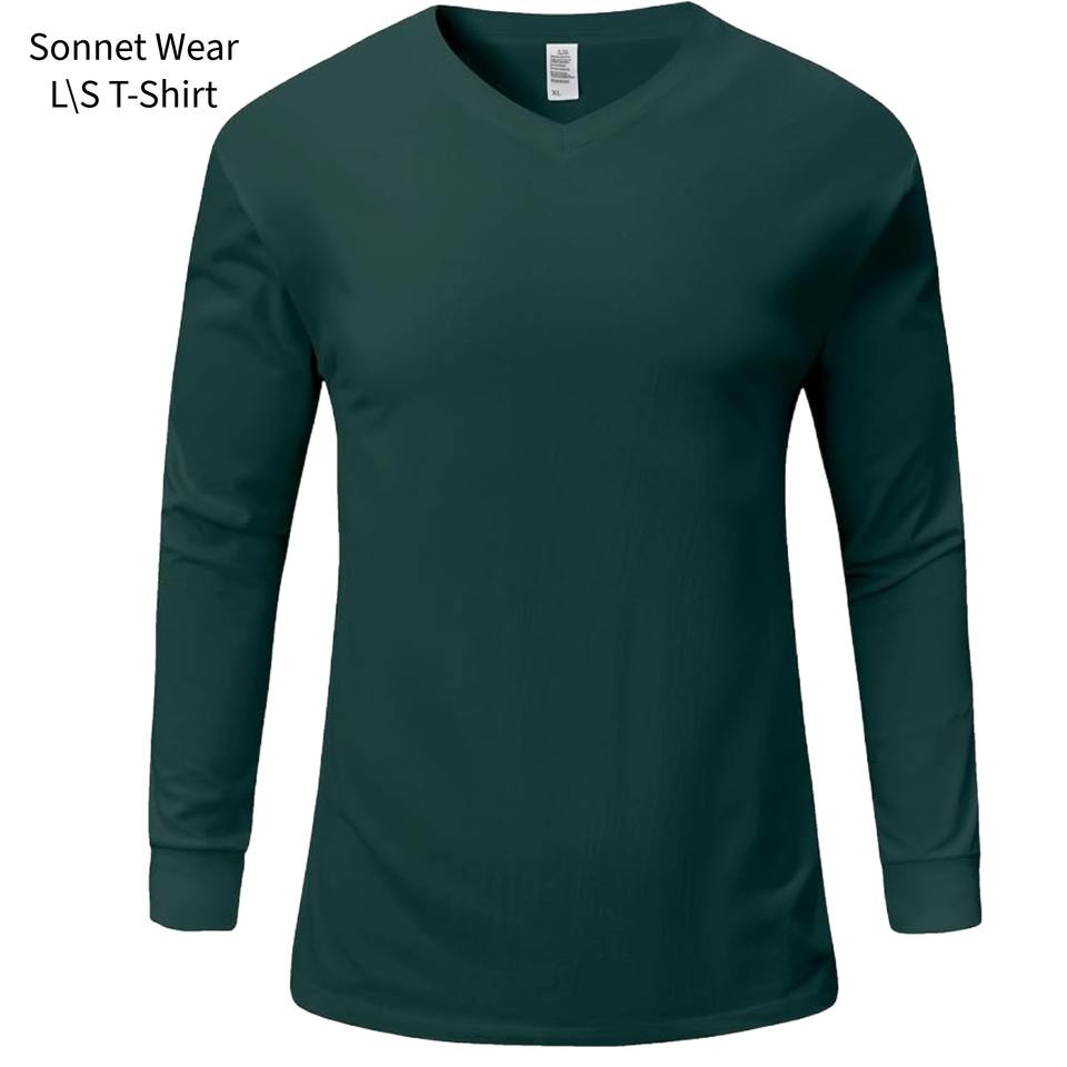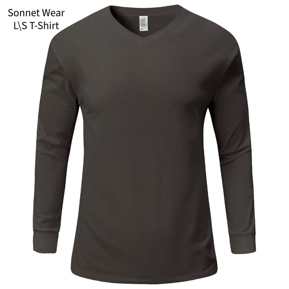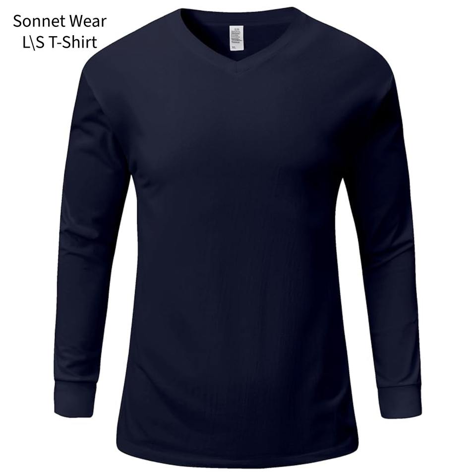 Cotton V-Neck Long Sleeve T-Shirt for Men Plain Outdoor Sweater Basic Top