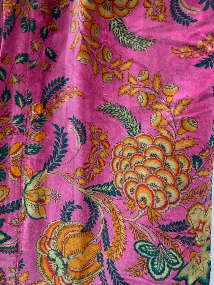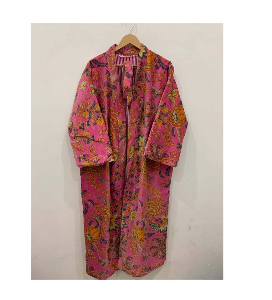 Long Pink Cotton Velvet Kimono Bathrobe Gown with Floral Print Plus Size Adult Pajamas ODM Hotel Supply Summer Spa Occasion
