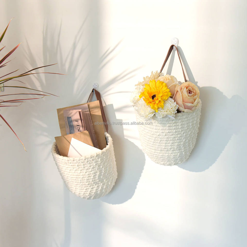 Cotton Wall Flower Hanging Basket Sustainable Cotton Wall Storage Basket Portable Baskets for Home & Kitchen Decor