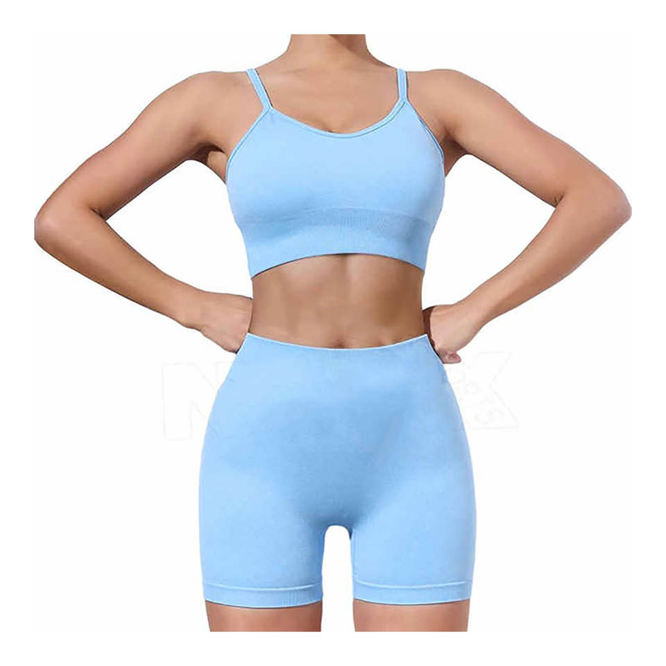Cotton Workout Outfit for Women Fitness Gym Scrunch Shorts and Sports Bra Set Custom Activewear