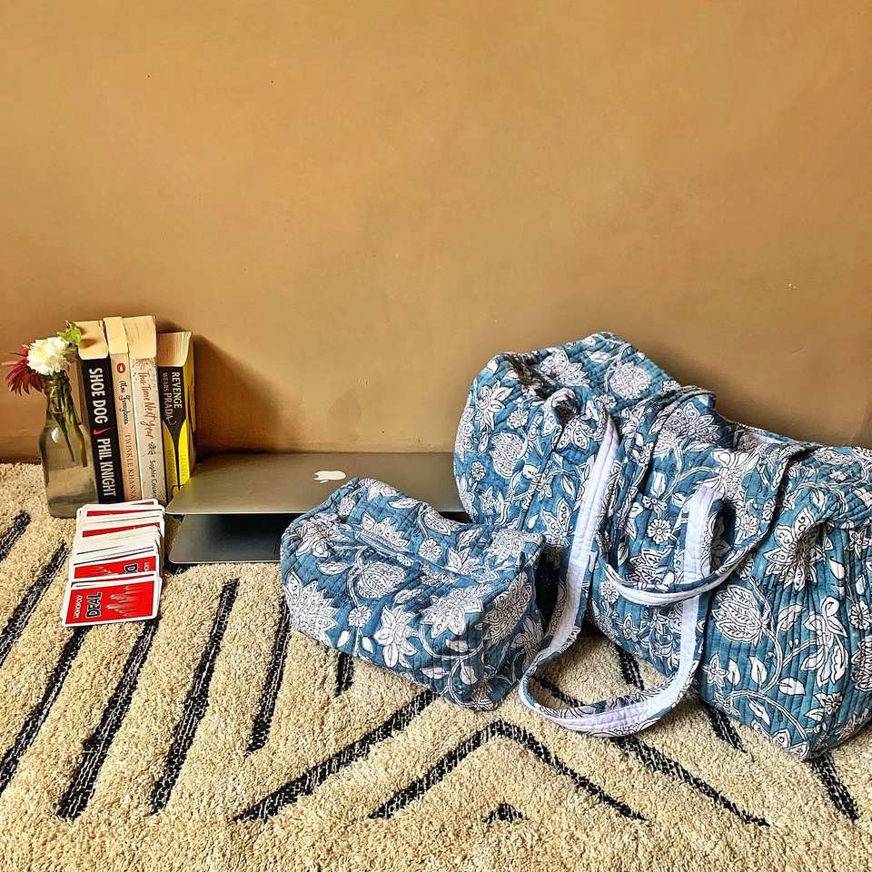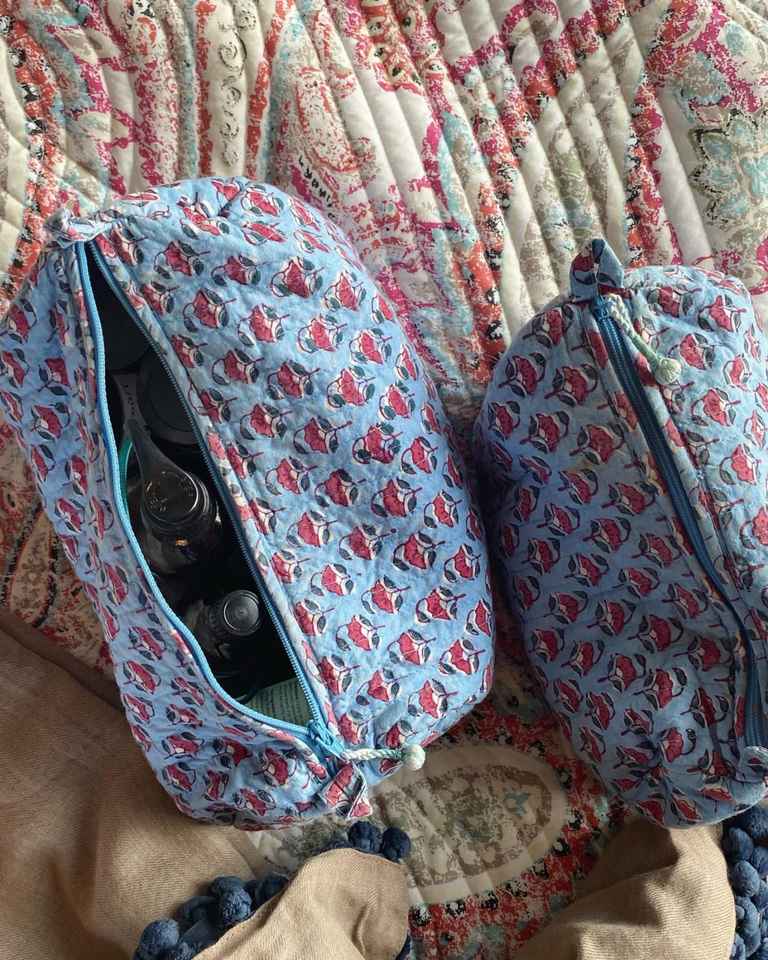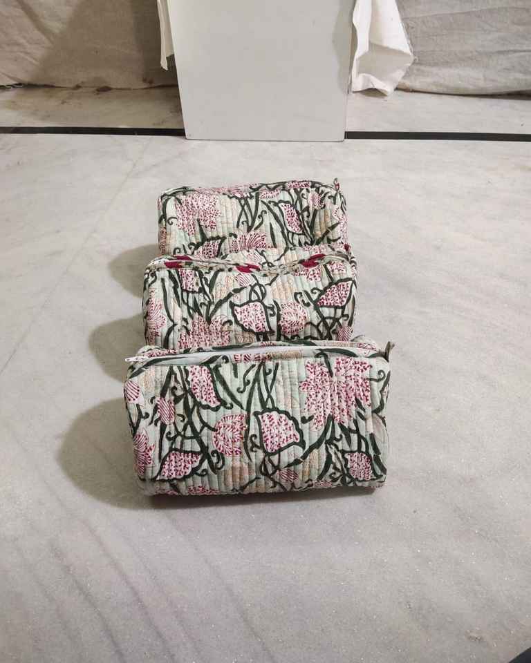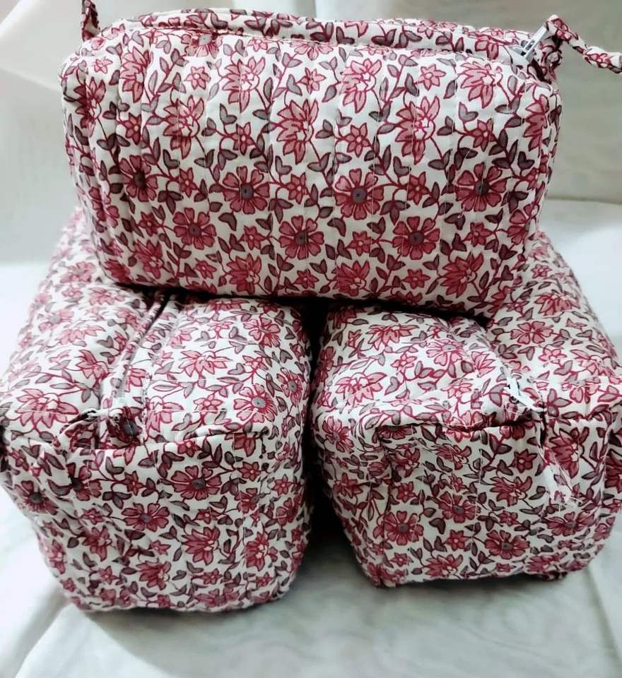 Cotton Zipper Closure Girl Toiletry 3pcs Set Quilting Design Flower Print Rectangle Big Capacity Lady Cosmetic Makeup Bag Travel