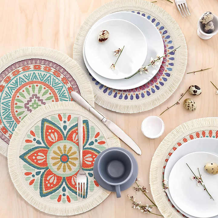 Cotton and Hemp Tassel Table Accents Custom Printed Reusable Placemats for Boho Chic Weddings and Dining Made From Paper