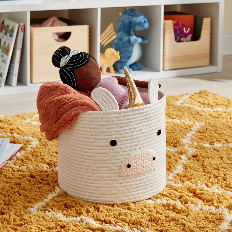 Cotton cord basket hand-woven baby laundry blanket basket nursery receptacle box round woven decorative clothes basket