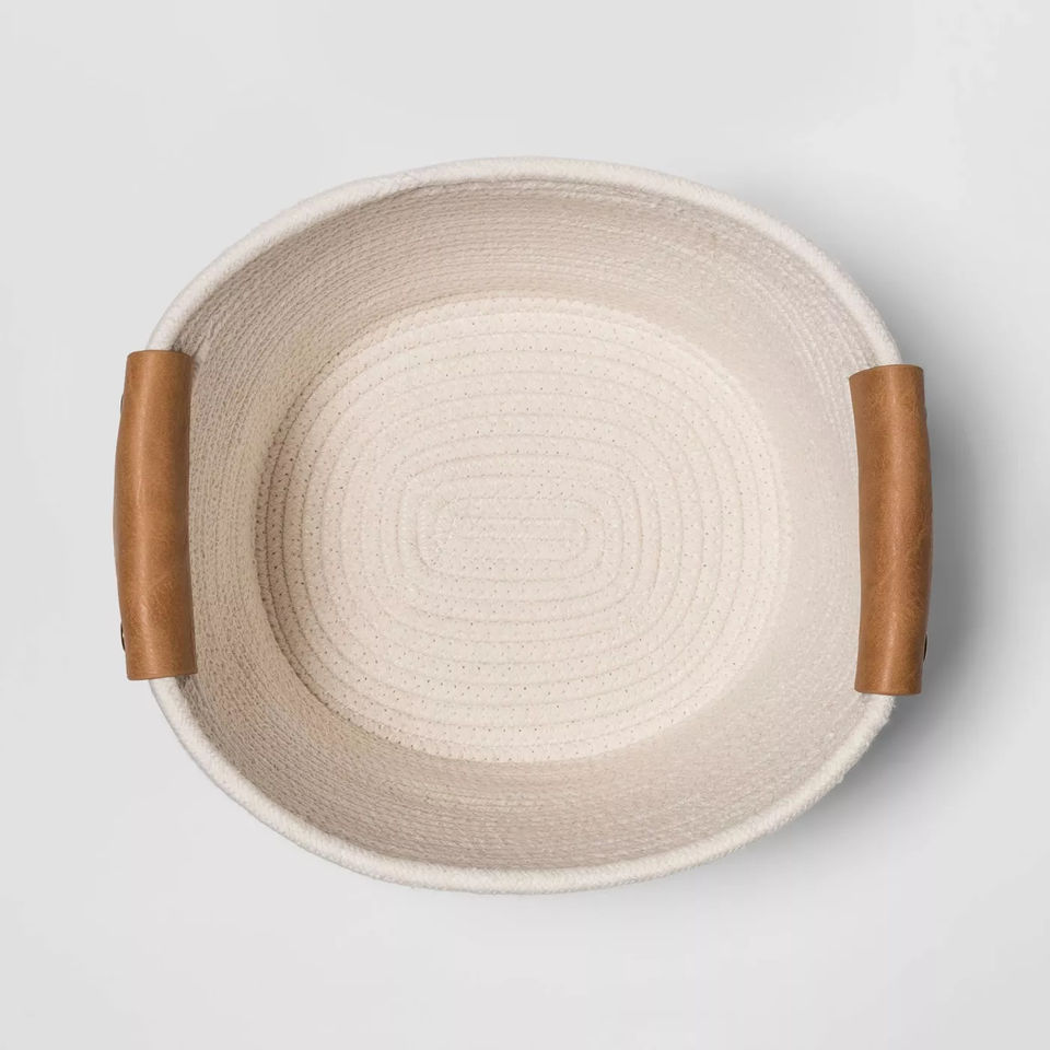 Cotton rope basket Foldable storage tools There are two leather handle are of reliable quality large medium and small