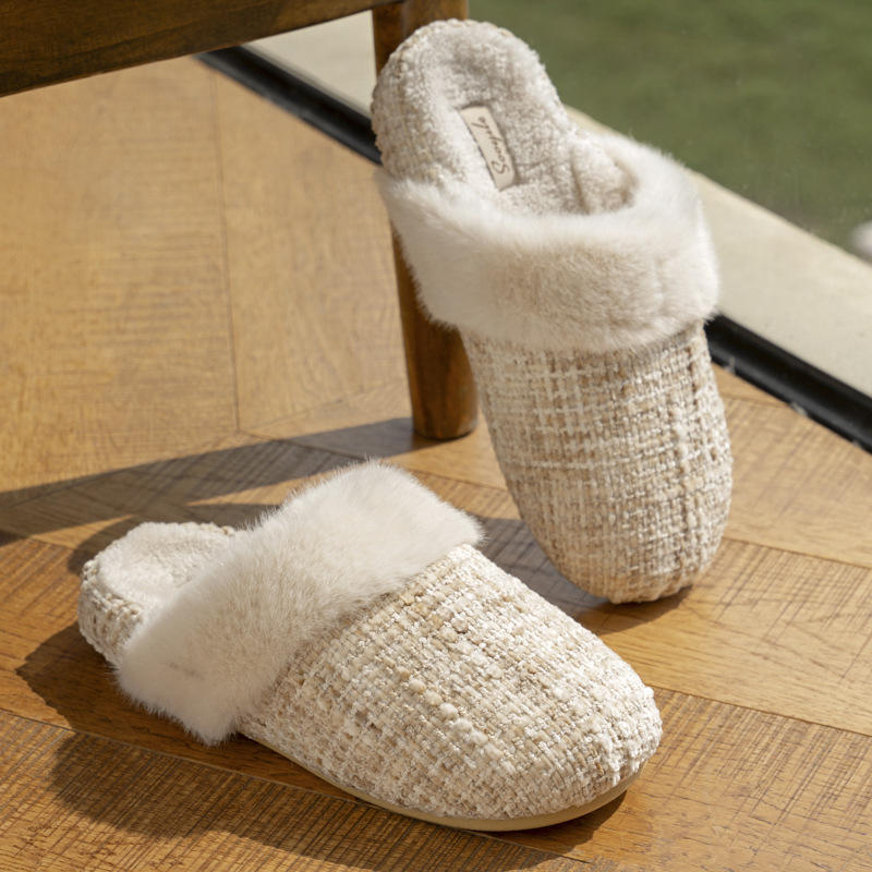 Cotton slippers for Women in Autumn and Winter, Indoor Home Insulation with Plush Flooring