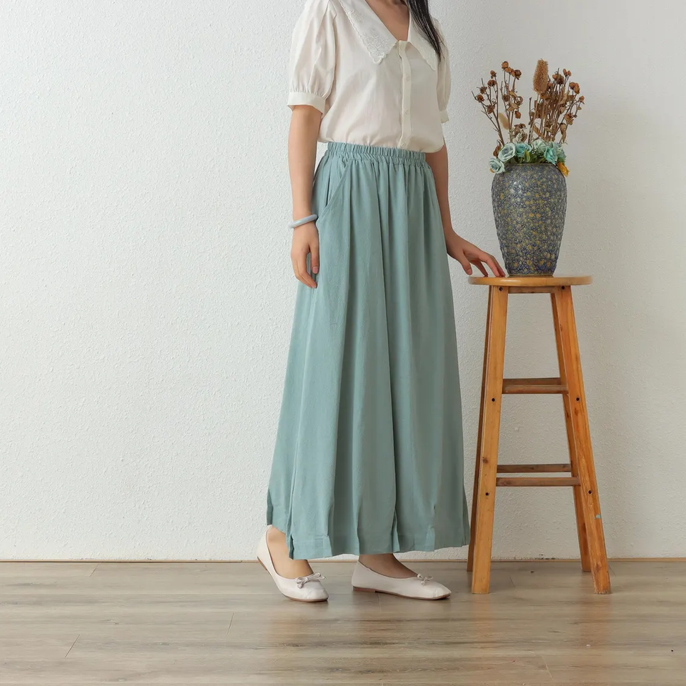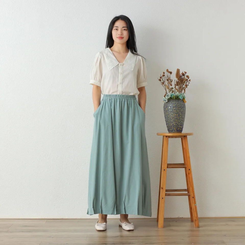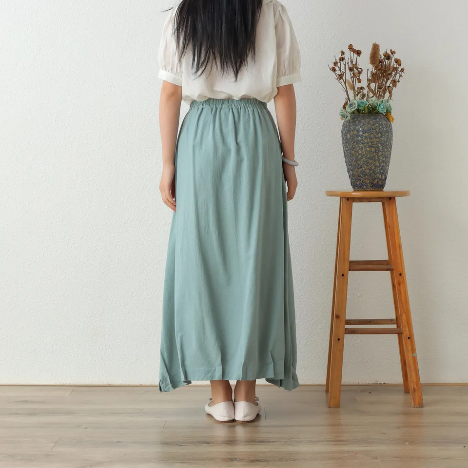 Cotton summer skirts pleated A-line skirts with elastic waist long flared plus size custom skirts