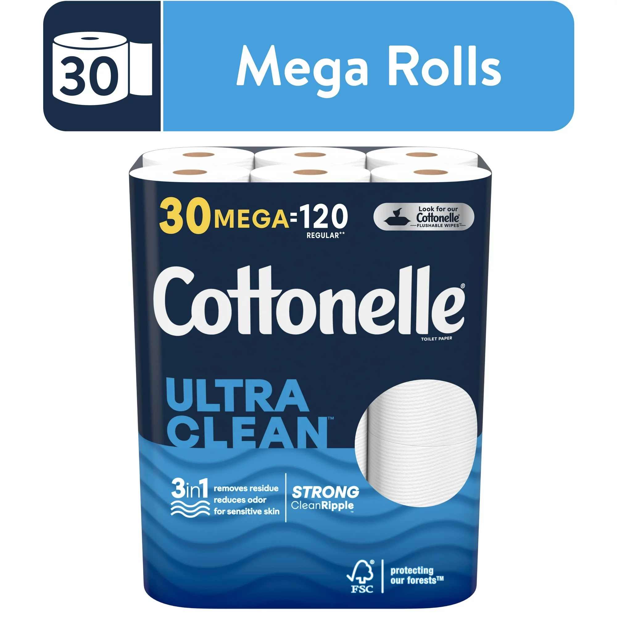 Cottonelle Ultra Clean Toilet Paper, 30 Mega Rolls, 312 Sheets Per Roll (9,360 Total)