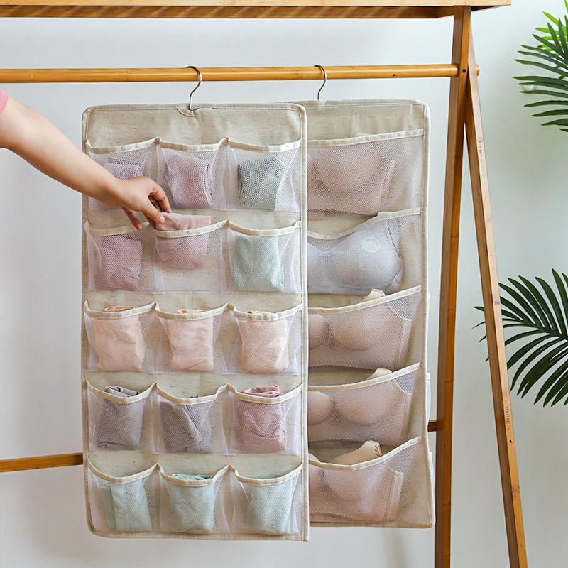 Cottonway Underwear Storage Bag Double-Sided Wall Hanging Organizer 100% Cotton Rectangle Hook Type For Wardrobe Bedroom