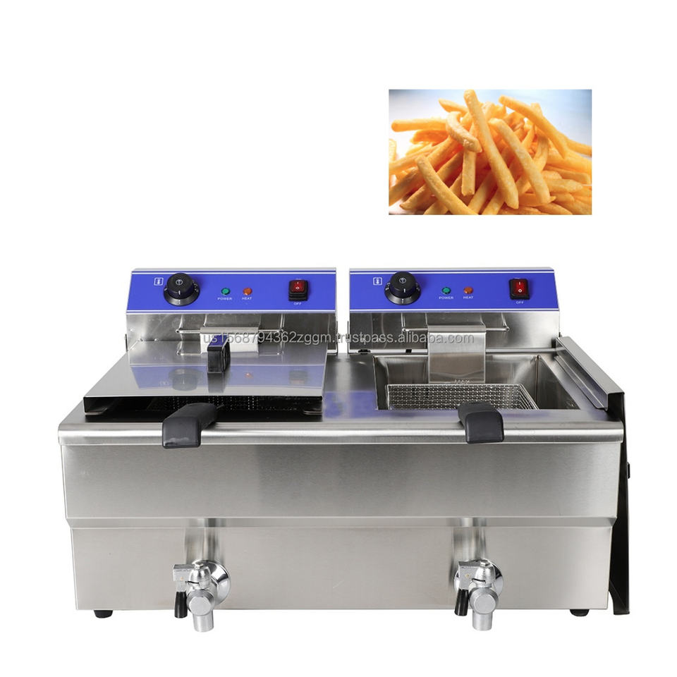 Counter Top Double Tank 2-Basket Electric Fryer Machine Potato Chips Chicken Snack Fryer Machine